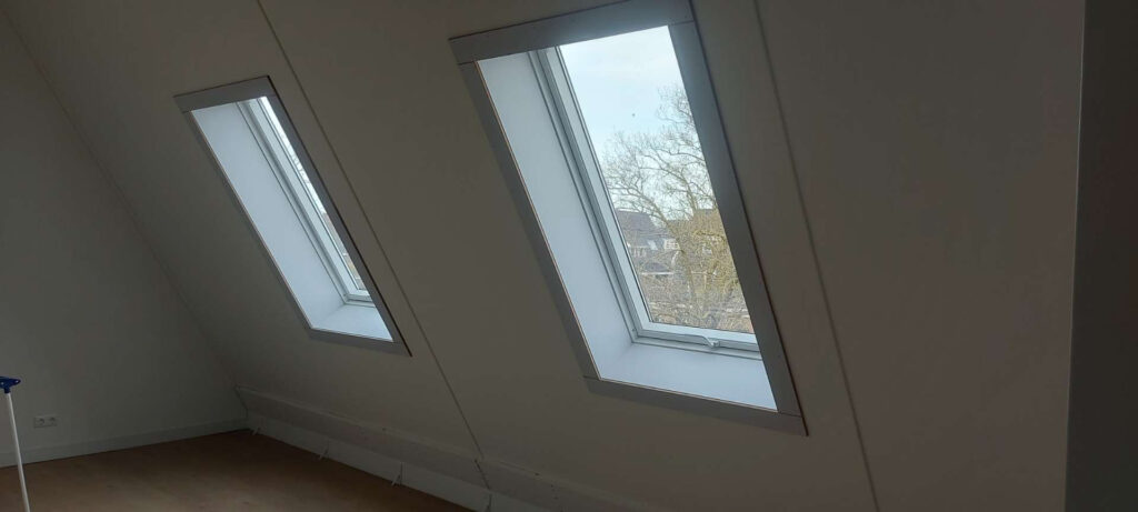 Dankzij de plaatsing van meerdere dakramen is er nu veel meer lichtinval en ventilatie in deze ruimte. Het natuurlijke daglicht benadrukt de vorm van de scharnierkap en maakt de ruimte optisch groter en comfortabeler.